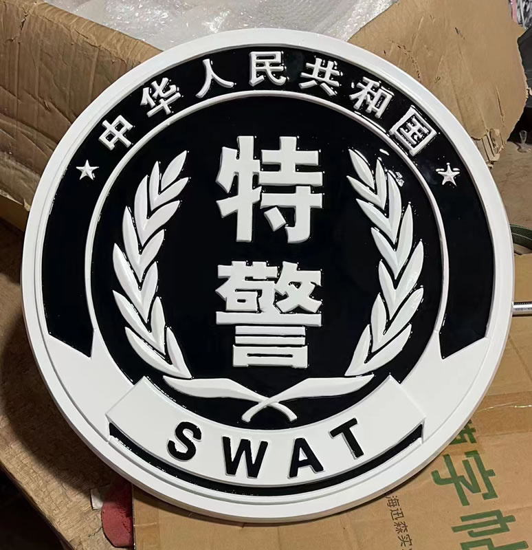 特警警徽通常采用金属材质制作,形状为圆形或椭圆形,上面印有特警队的标志性图案或标识,如国徽、特警字样或其他特定的标志。警徽的颜色多为黑色或银灰色,背后通常有用于固定的装置,可以将警徽佩戴在服装或装备上。